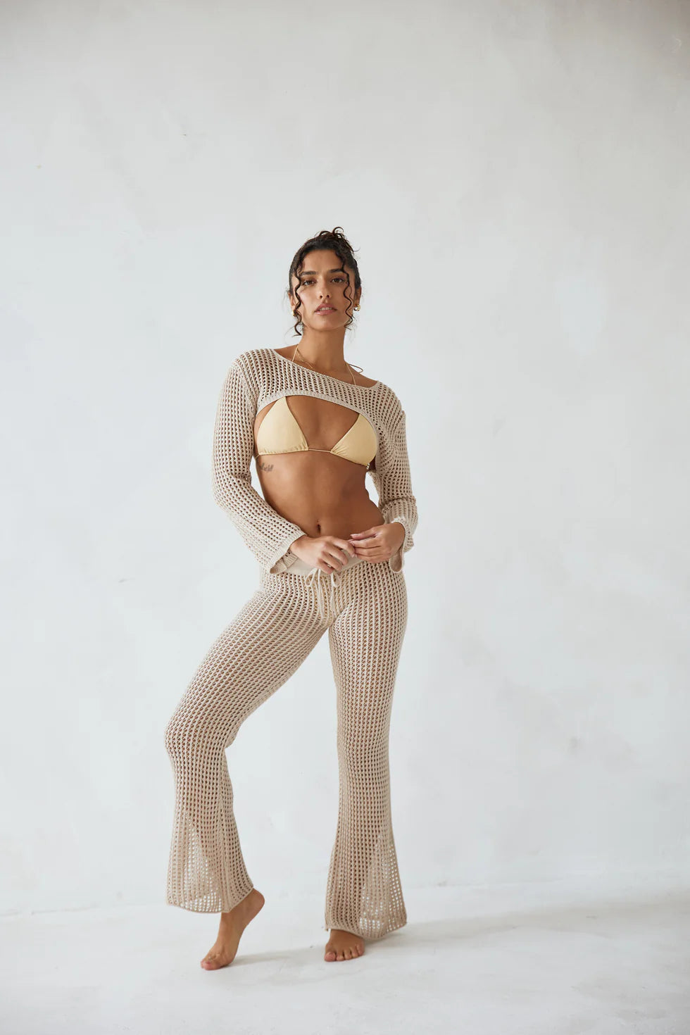 Whether you're at the beach or at a party, the Baja Bolero is your go-to style! This airy bolero features long sleeves and is made from a soft cotton blend crotchet. Complete the look with the Baja Pant.