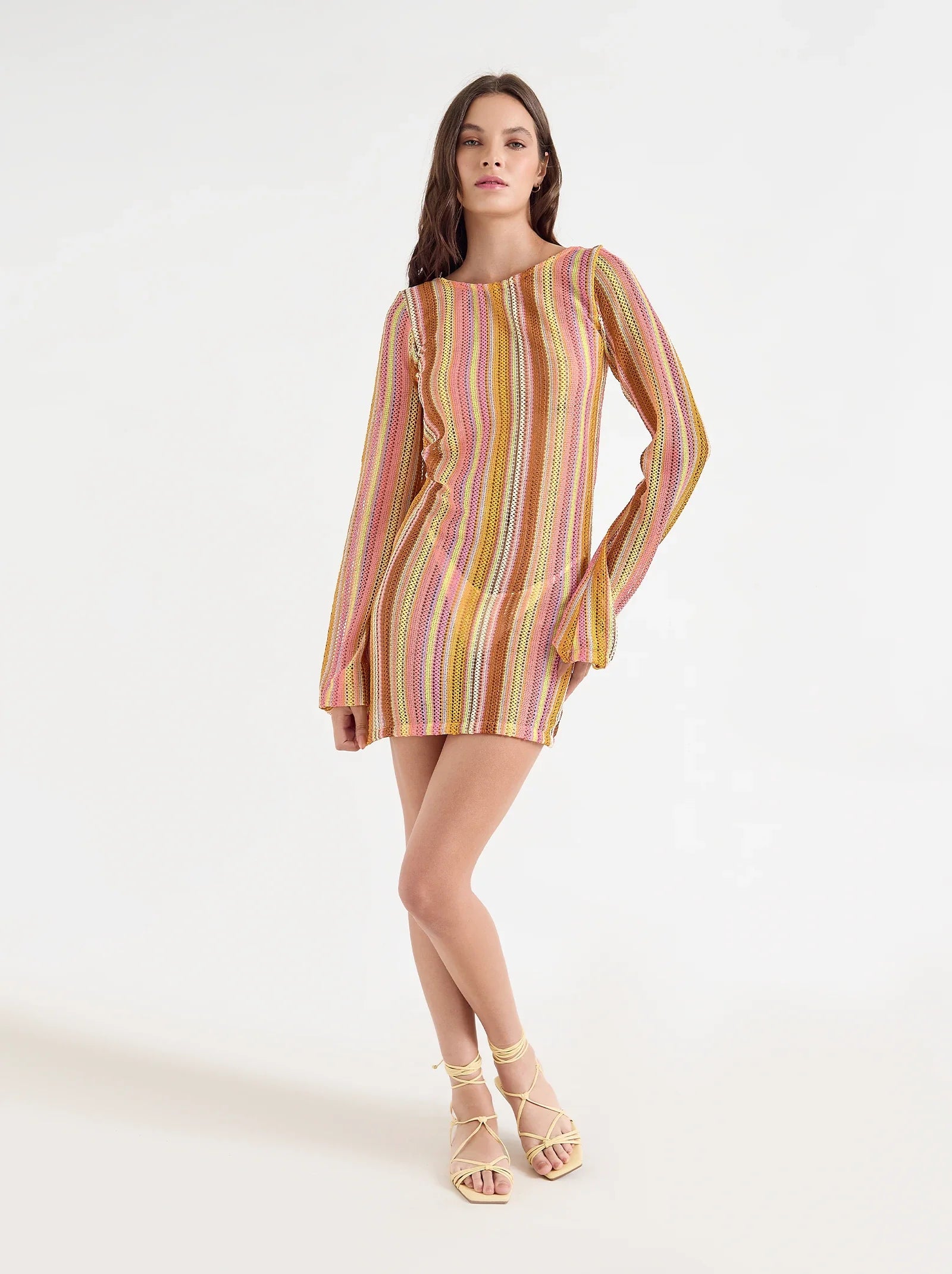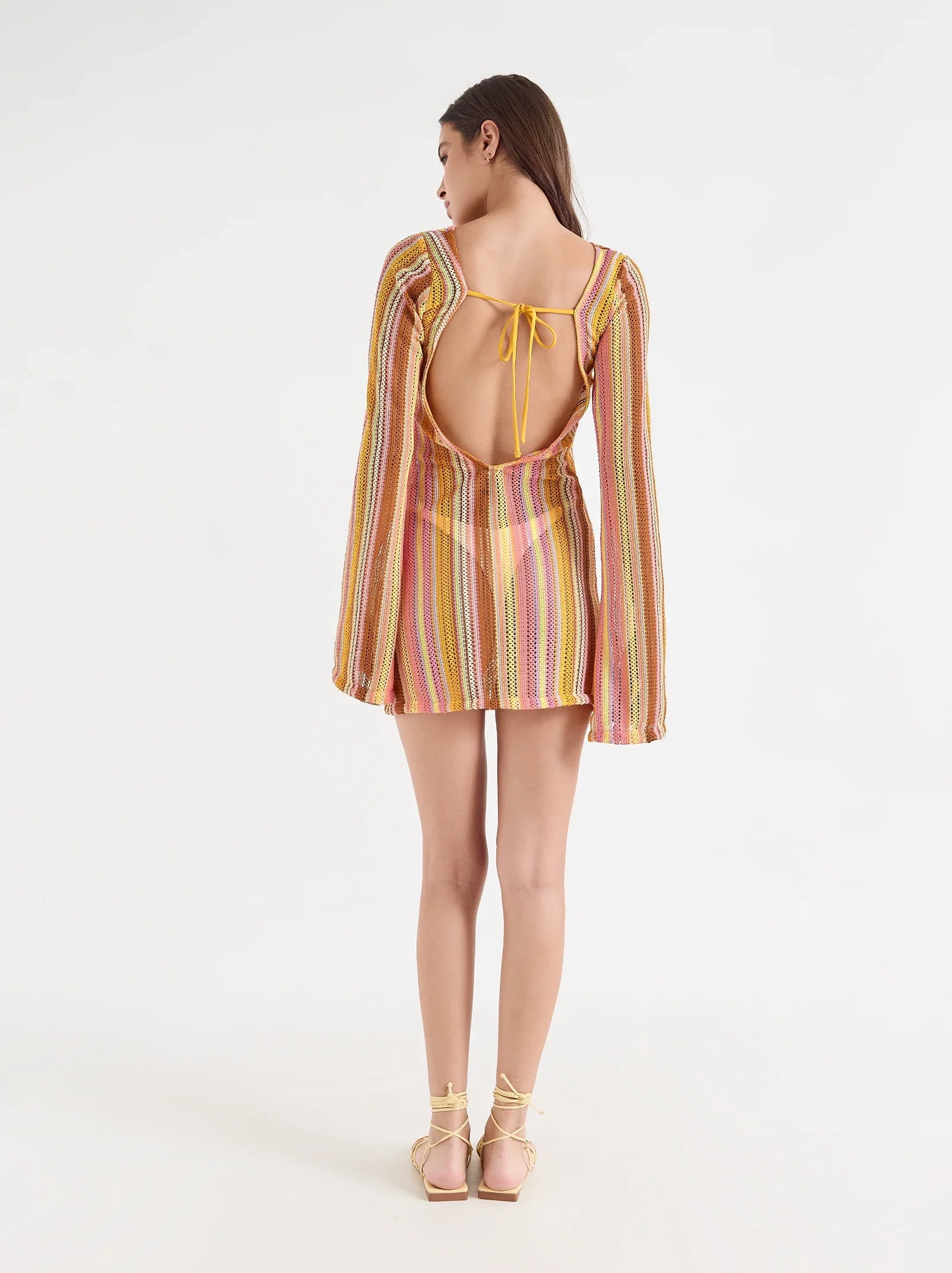 Introducing the Samira Dress the ultimate beachside statement. This stunning short dress features long, wide sleeves for an effortlessly elegant flow, while its open-back design adds the perfect touch of allure. Delicate bias ties provide the perfect fit,