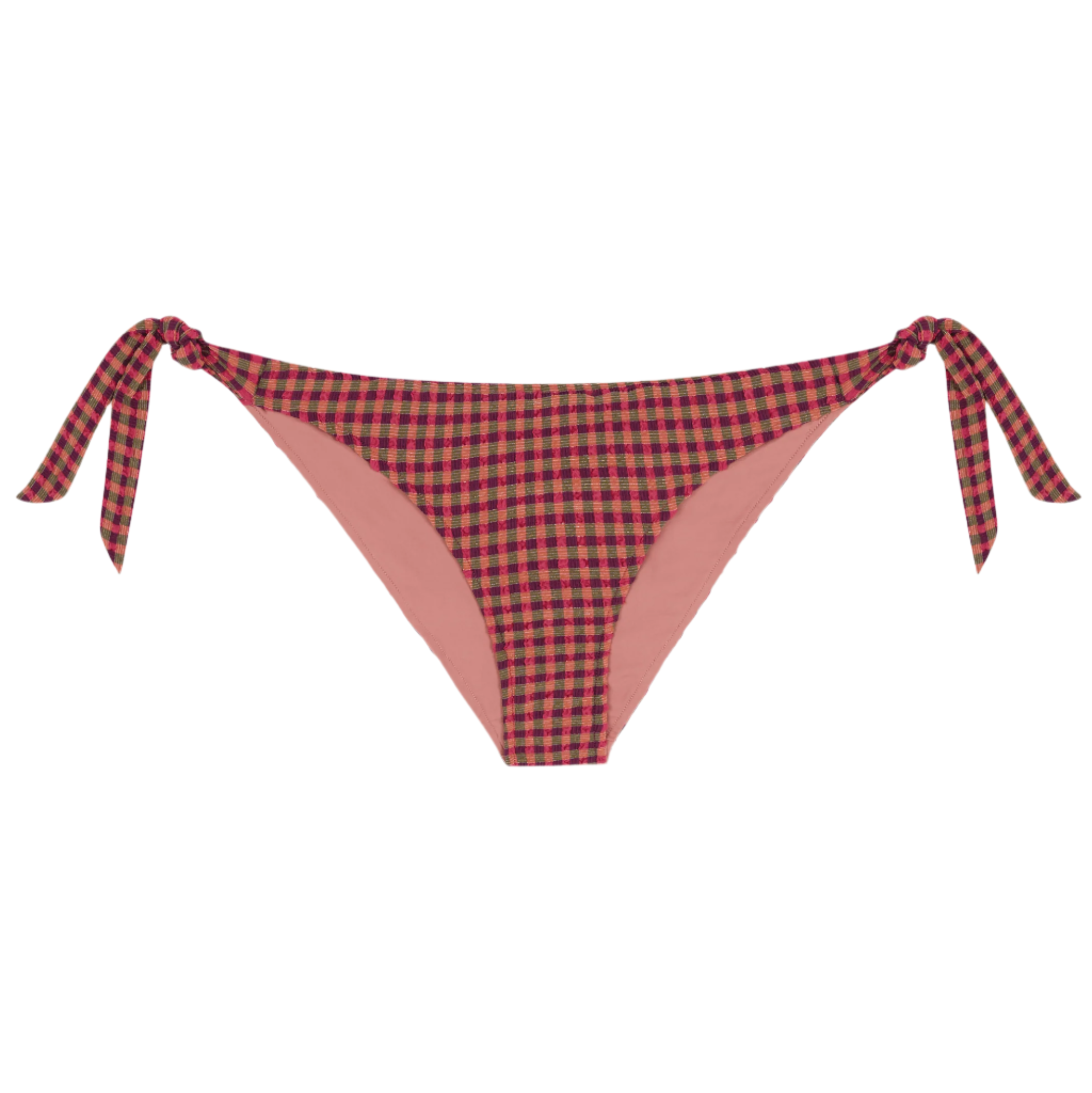 Bikini bottoms with greater coverage in the back, providing comfort and support with adjustable ties on the sides.