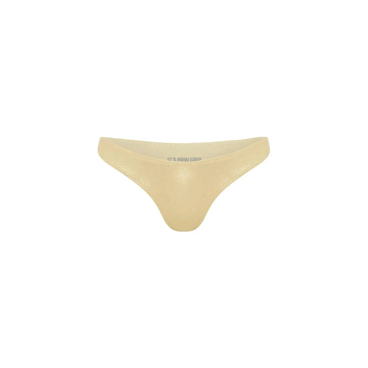 The 90s Luxe Pant in Champagne is made from a soft feeling high shine fabric with a beautiful stretch. Designed with a super flattering V front and back shape and a higher rise through the hips and mid cut coverage through the back to highlight curves and elongates legs.